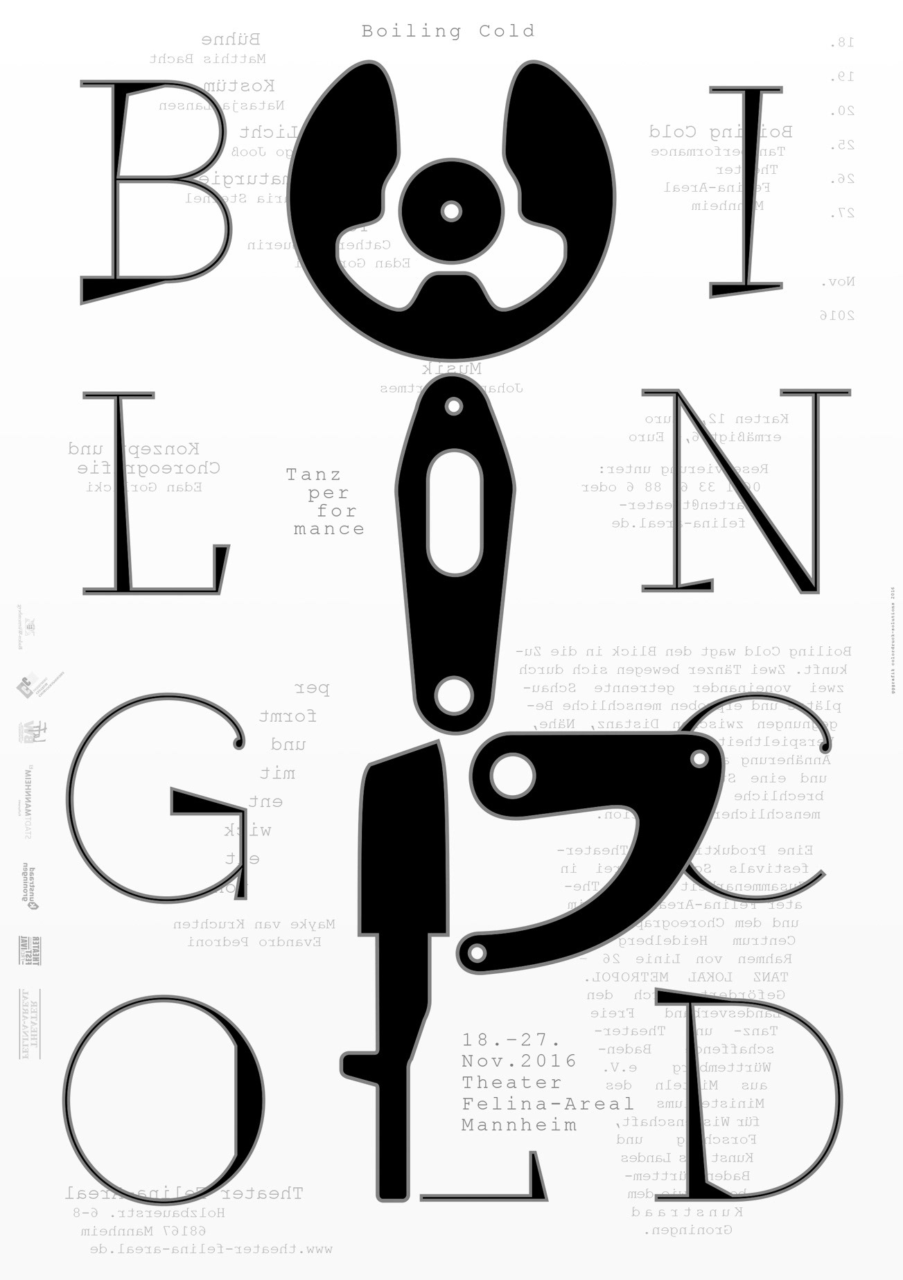 Poster for a Dance Performance, that uses typewriters to generate a sonic backdrop for the dancers, while they perform on two opposing stages. The performance conveys stark contrasts and pushes the boundaries of dance. Using a two-sided offset print (black and silver), on extraordinarily thin paper, the design picks up on these impulses, to create something extraordinary.