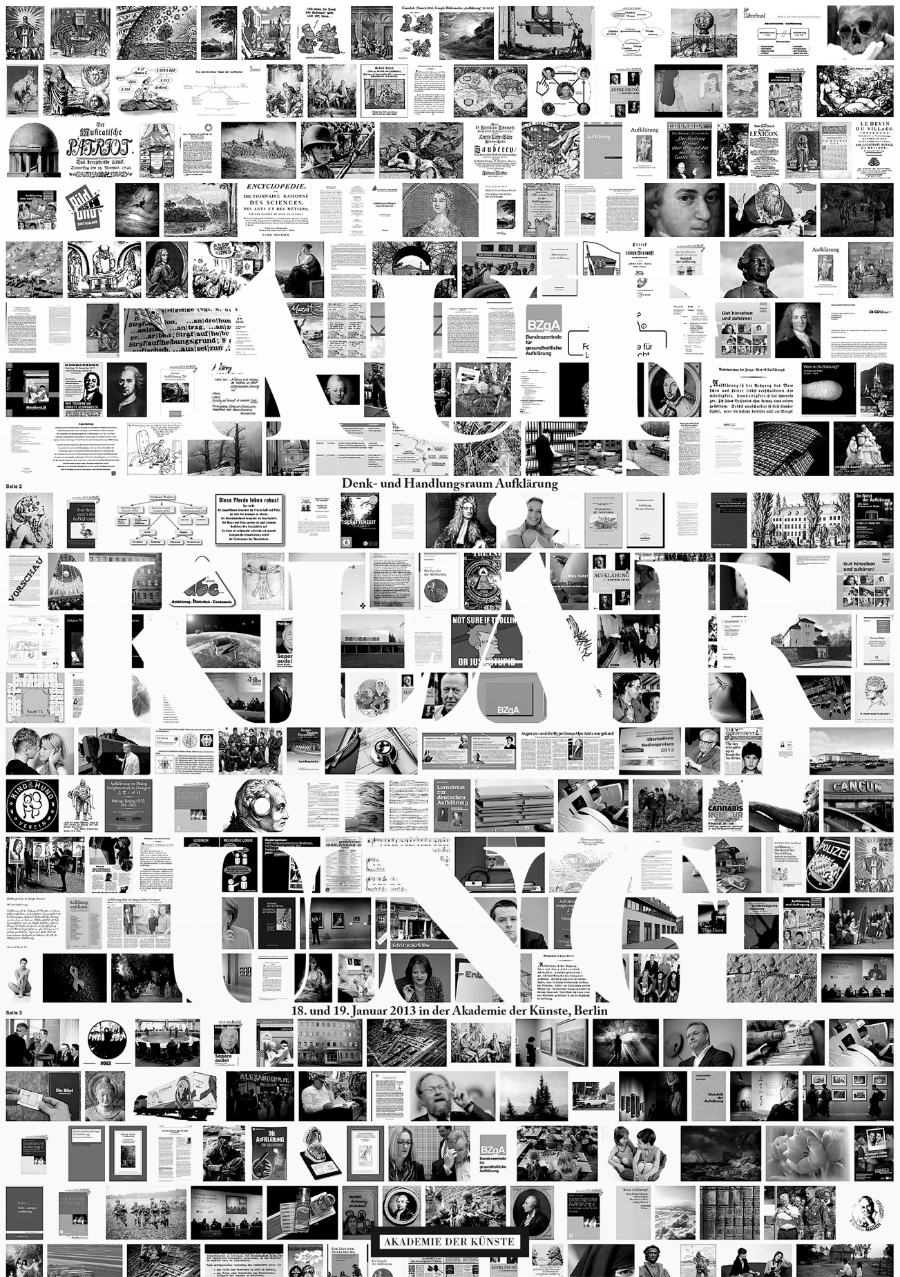 This poster for a conference on the current status of enlightenment, at the Akademie der Künste, used a screengrab of an image search for the background – just like the term itself, the results reflected the current, highly diffuse status of knowledge and research of the topic.