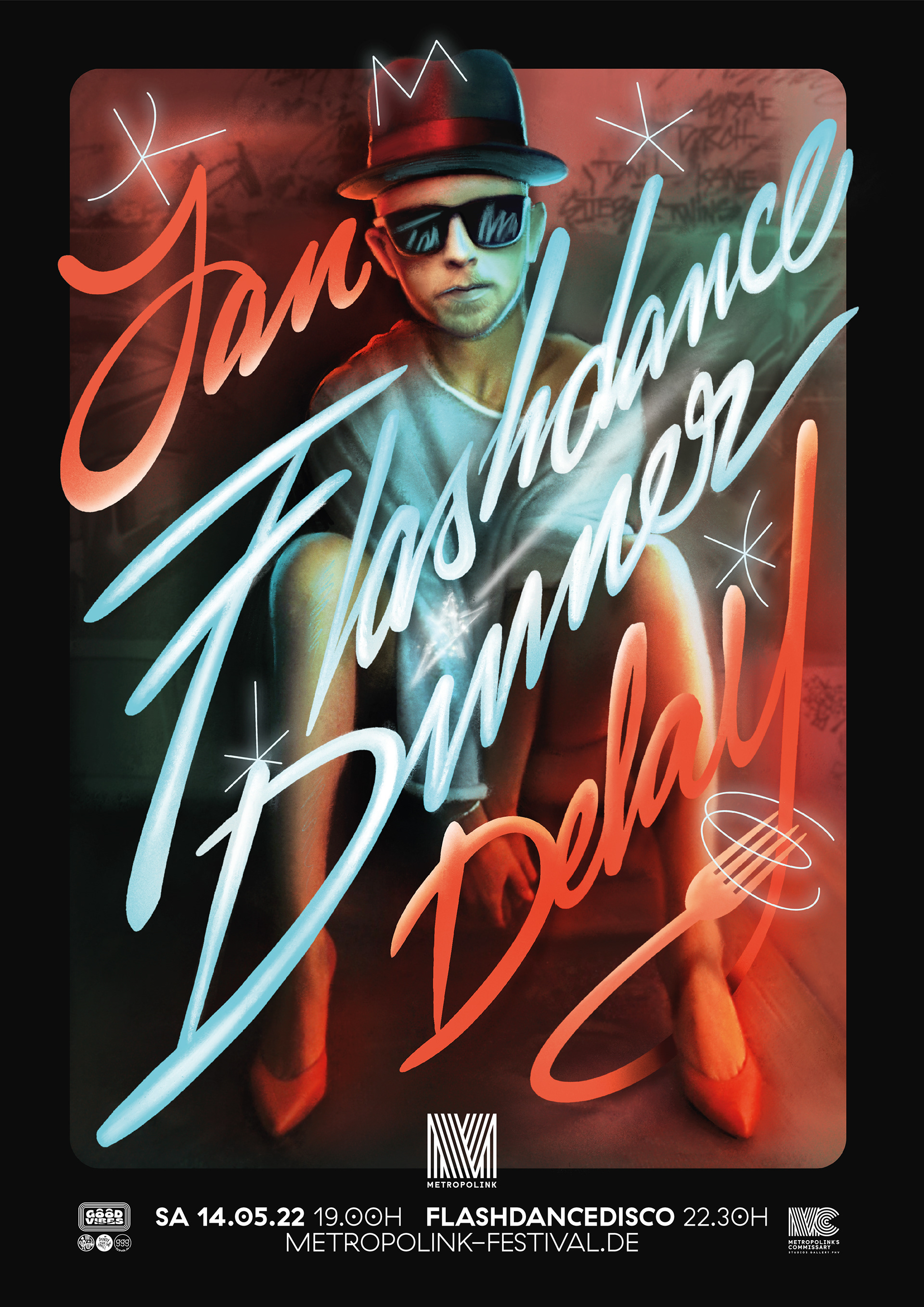 A cheeky combination of one of Germanys most influential icons of Hip Hop and an epic movie poster, oromoting a dinner/disco event.