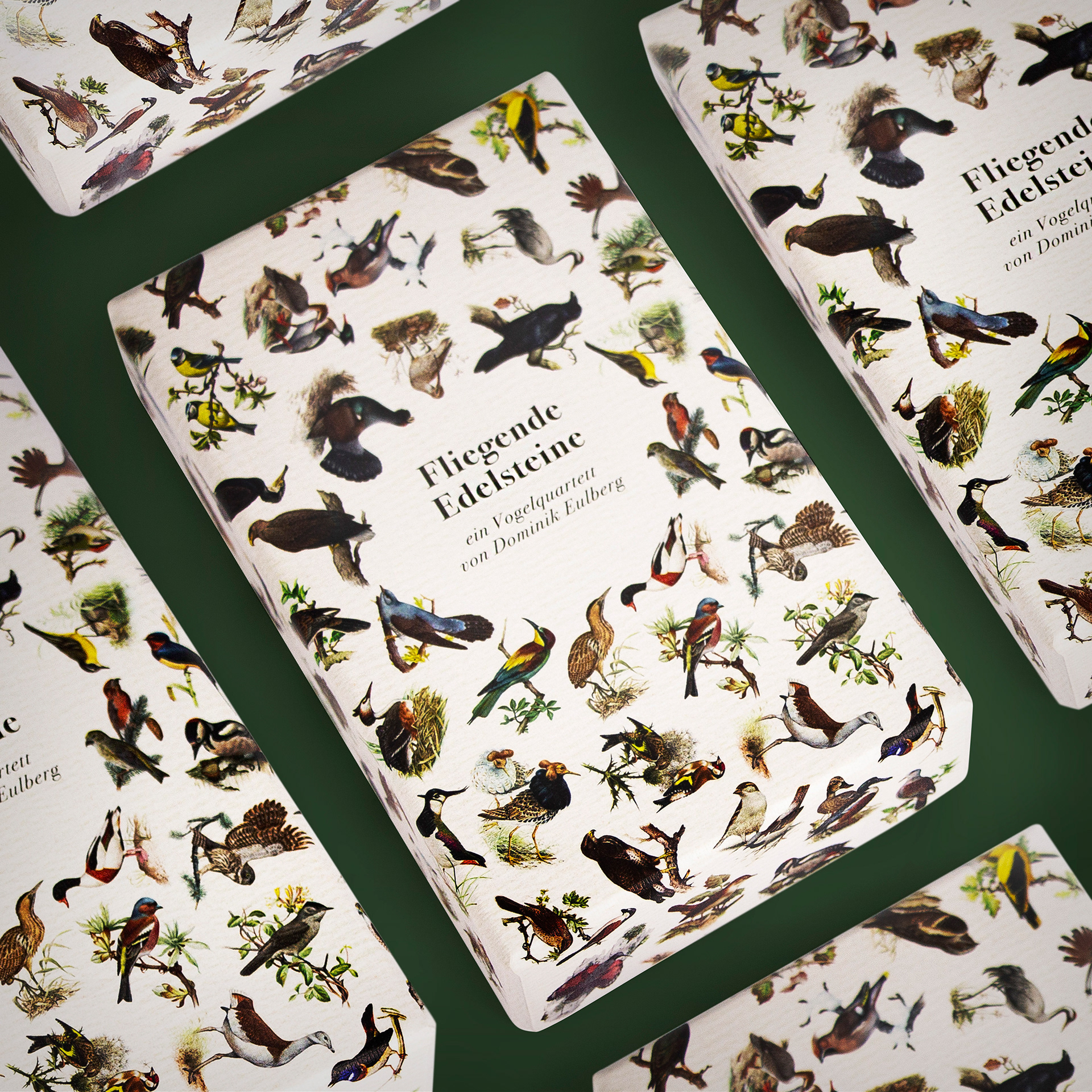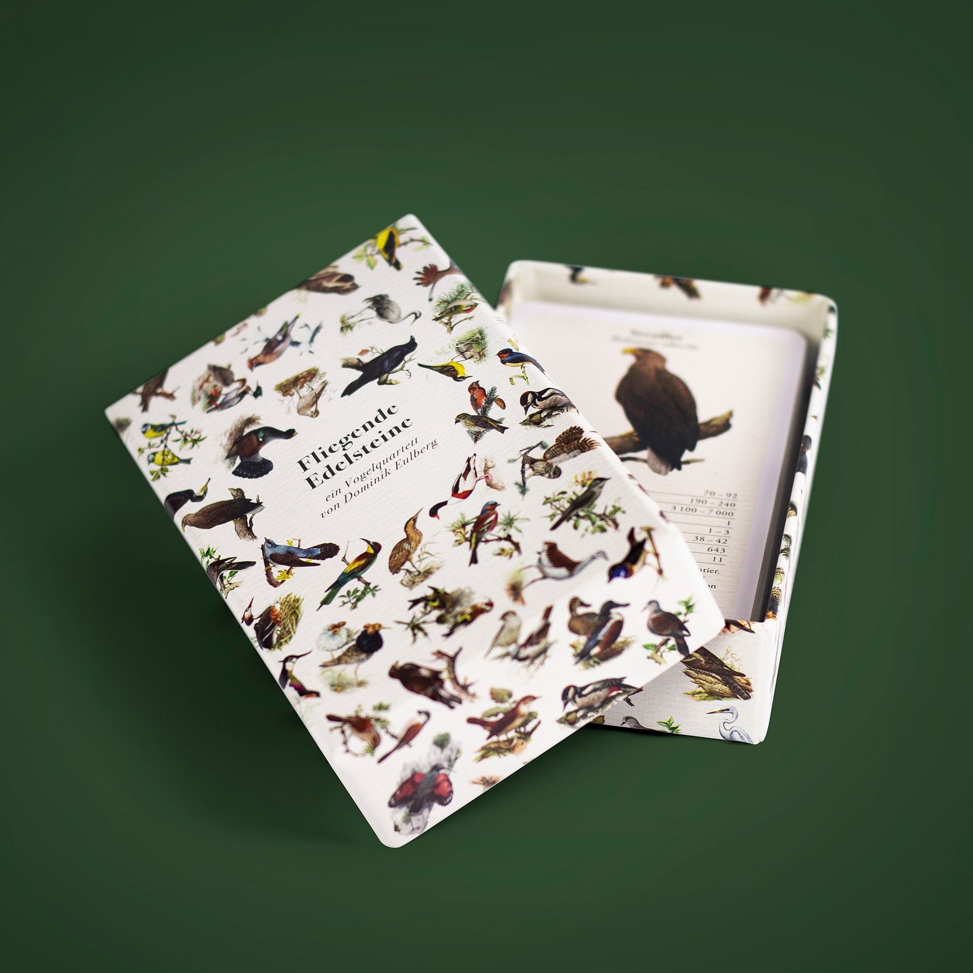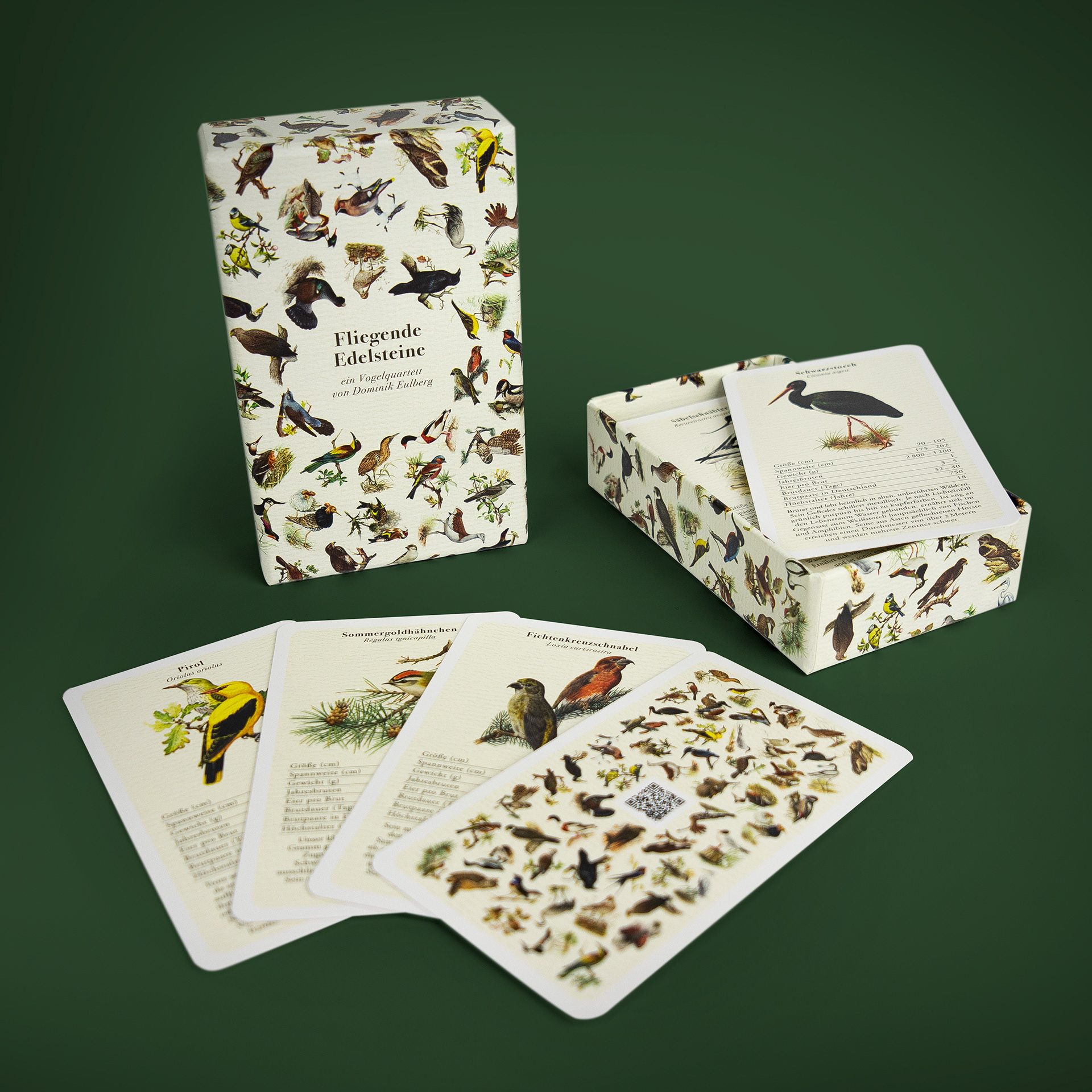 Birds card game for DJ Dominik Eulberg, whos music is inspired by natures lovely tunes. Each card has an individual QR code playing the birds sound.