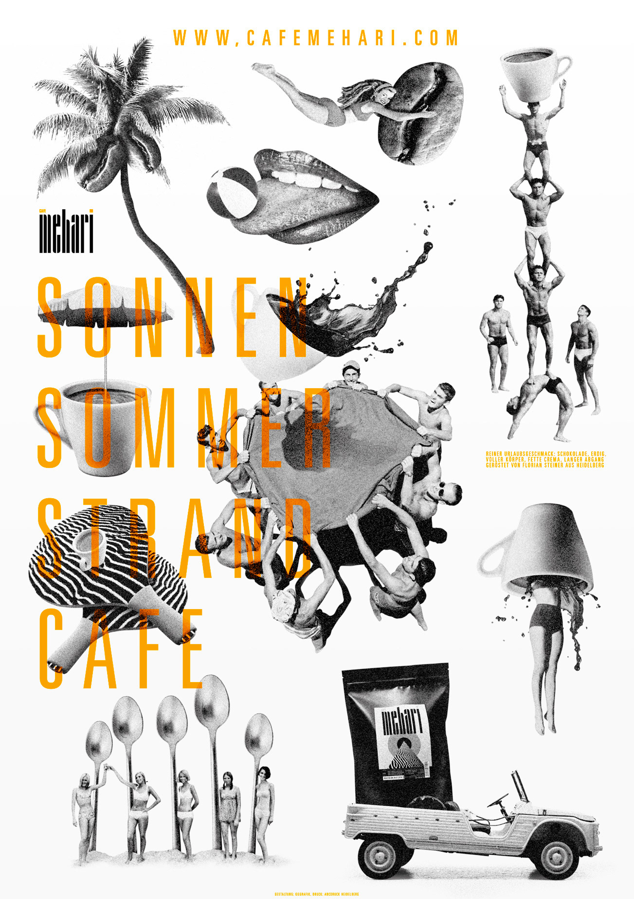 Florian Steiner Kaffee created a new brand of coffee, called “Mehari”. The poster deals with all the things the brand wishes to convey as its mission statement, and was printed with fluorescent orange and black.