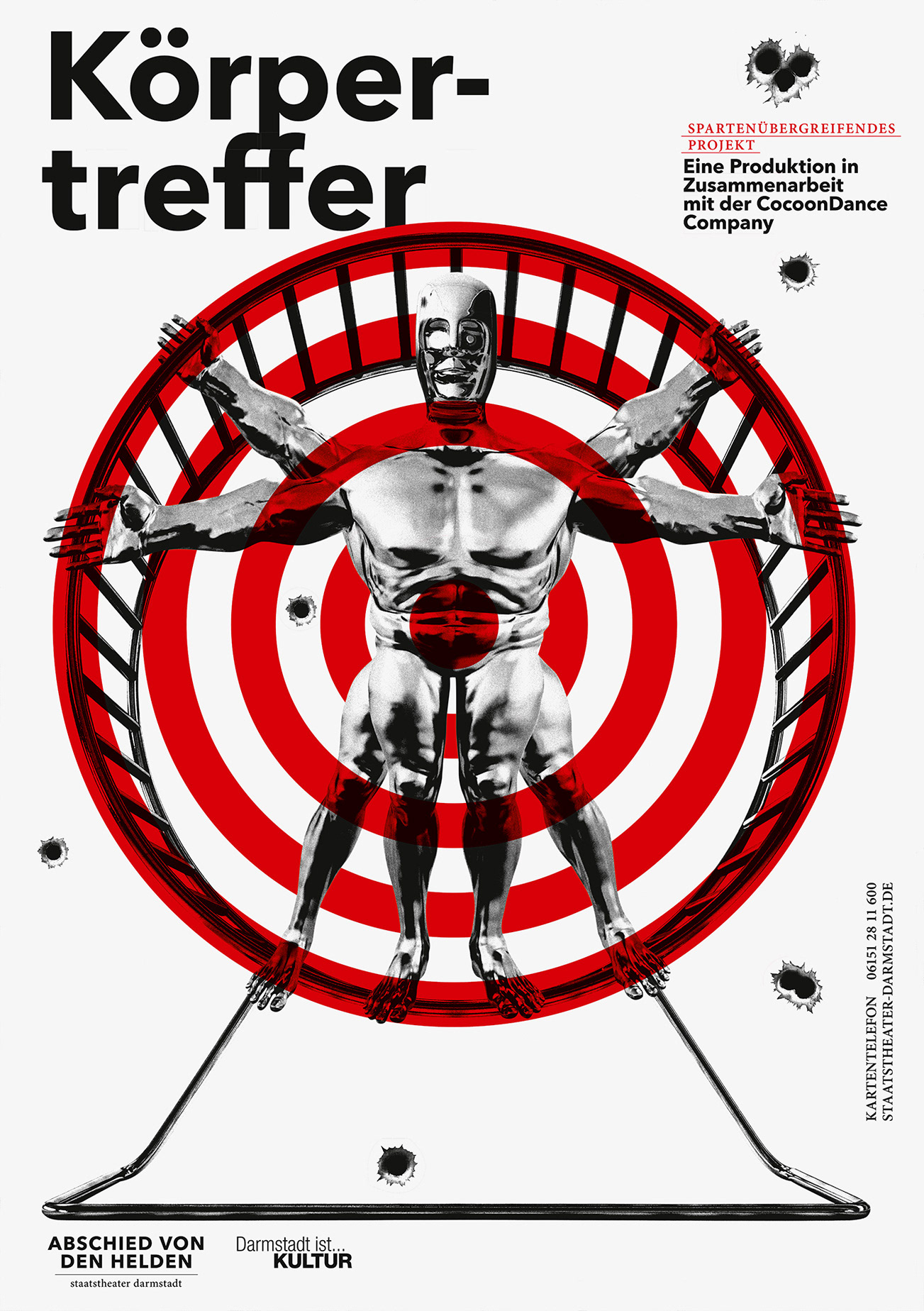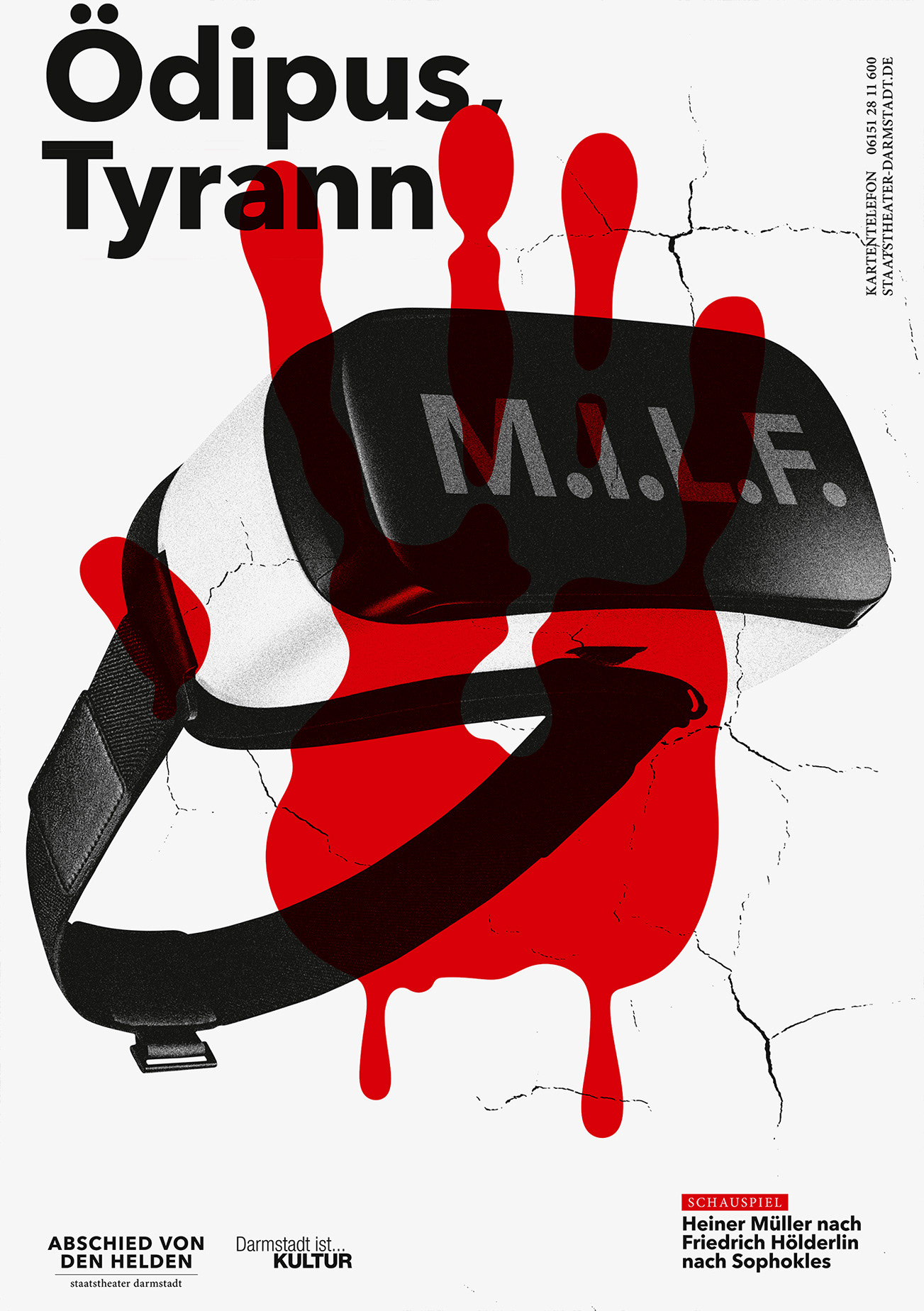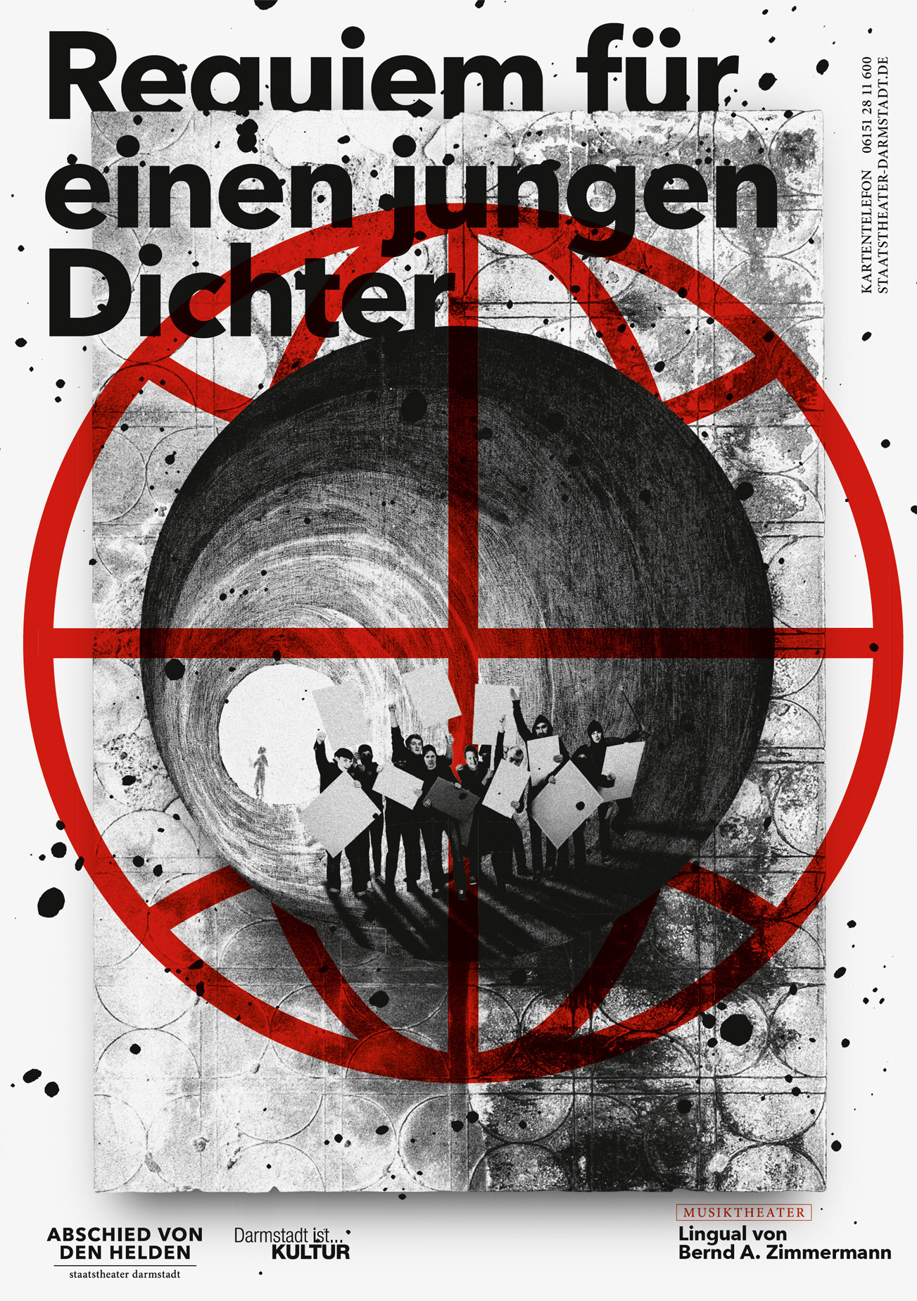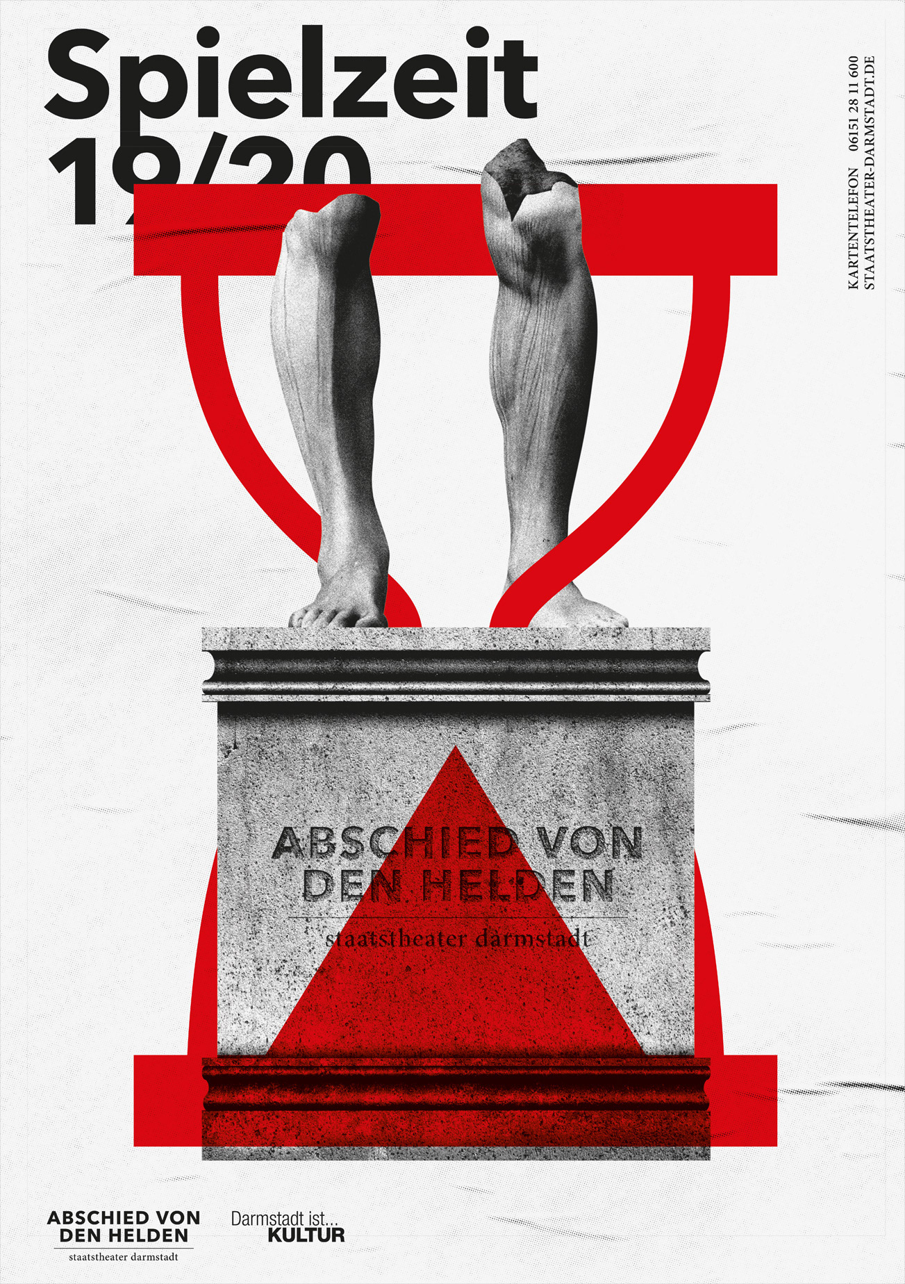 Poster Series for Staatstheater Darmstadt, subject: A farewell to heroes. This is the most extensive poster series created by the studio so far.