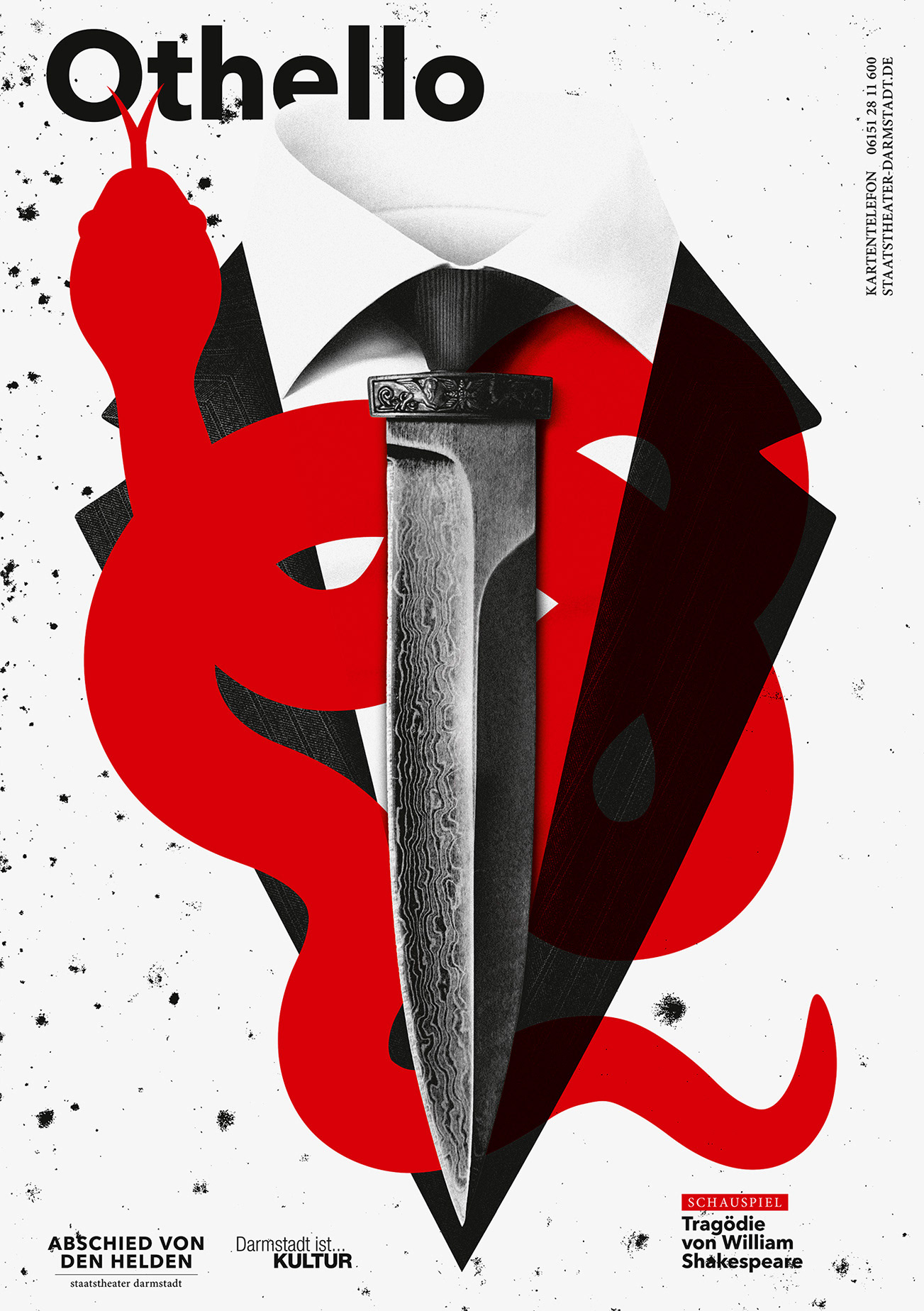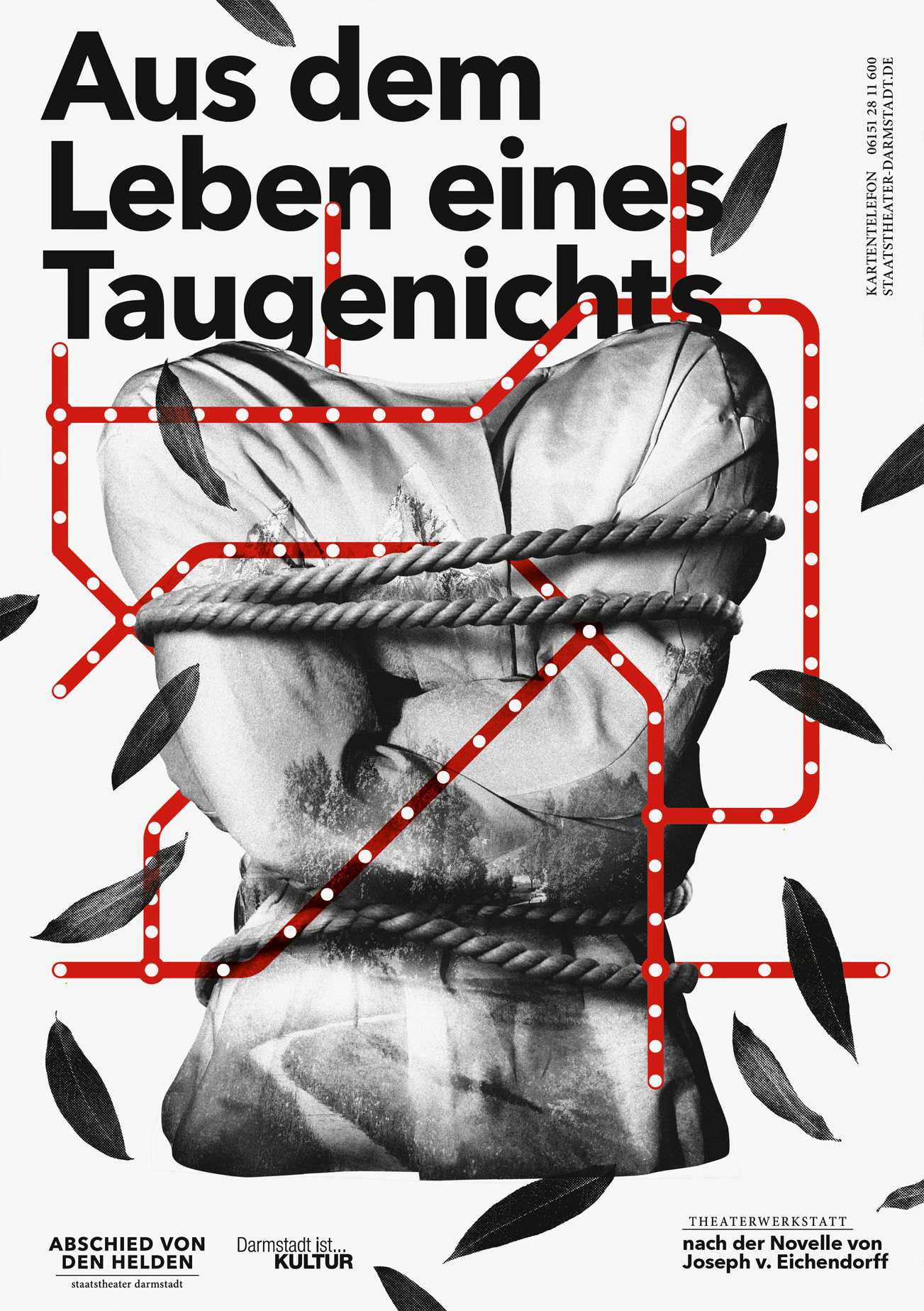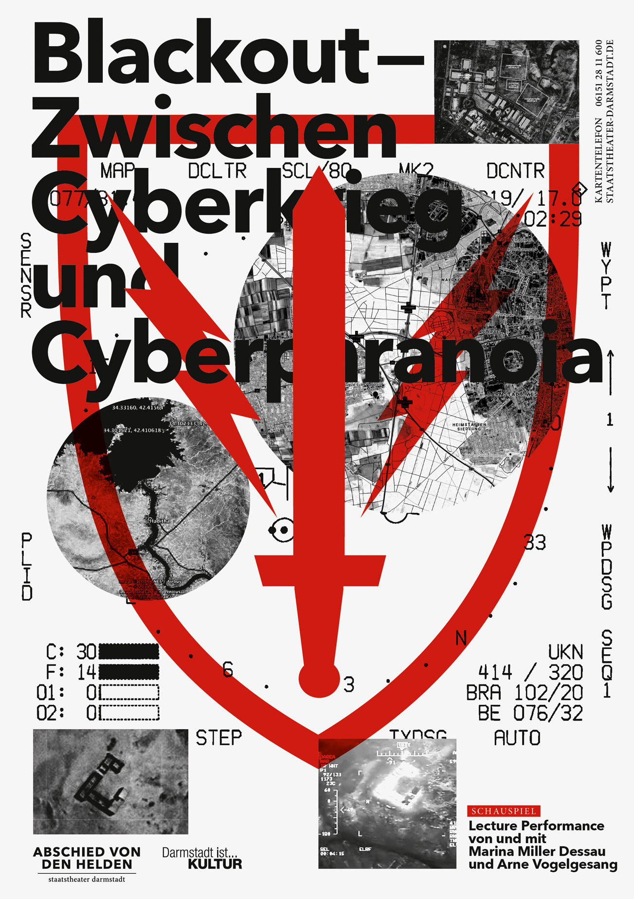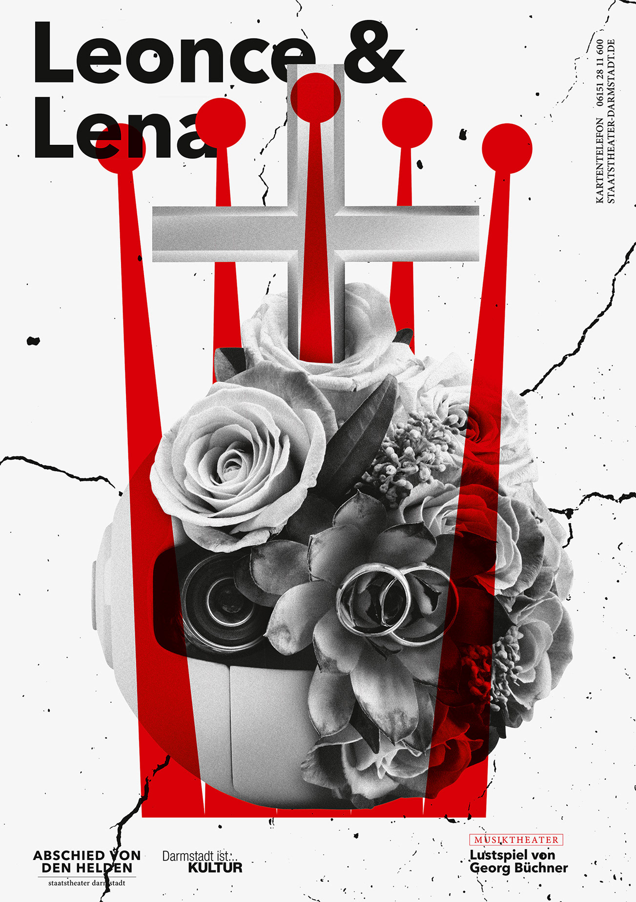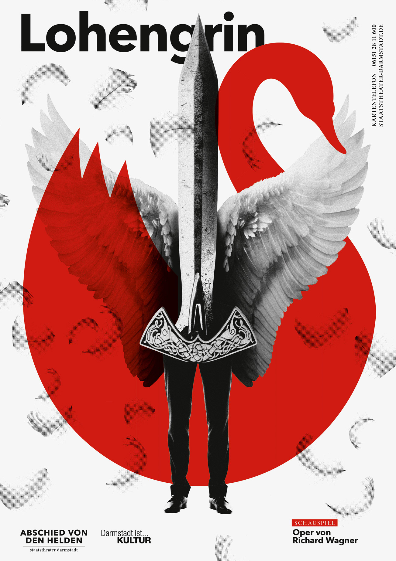 Poster Series for Staatstheater Darmstadt, subject: A farewell to heroes. This is the most extensive poster series created by the studio so far.