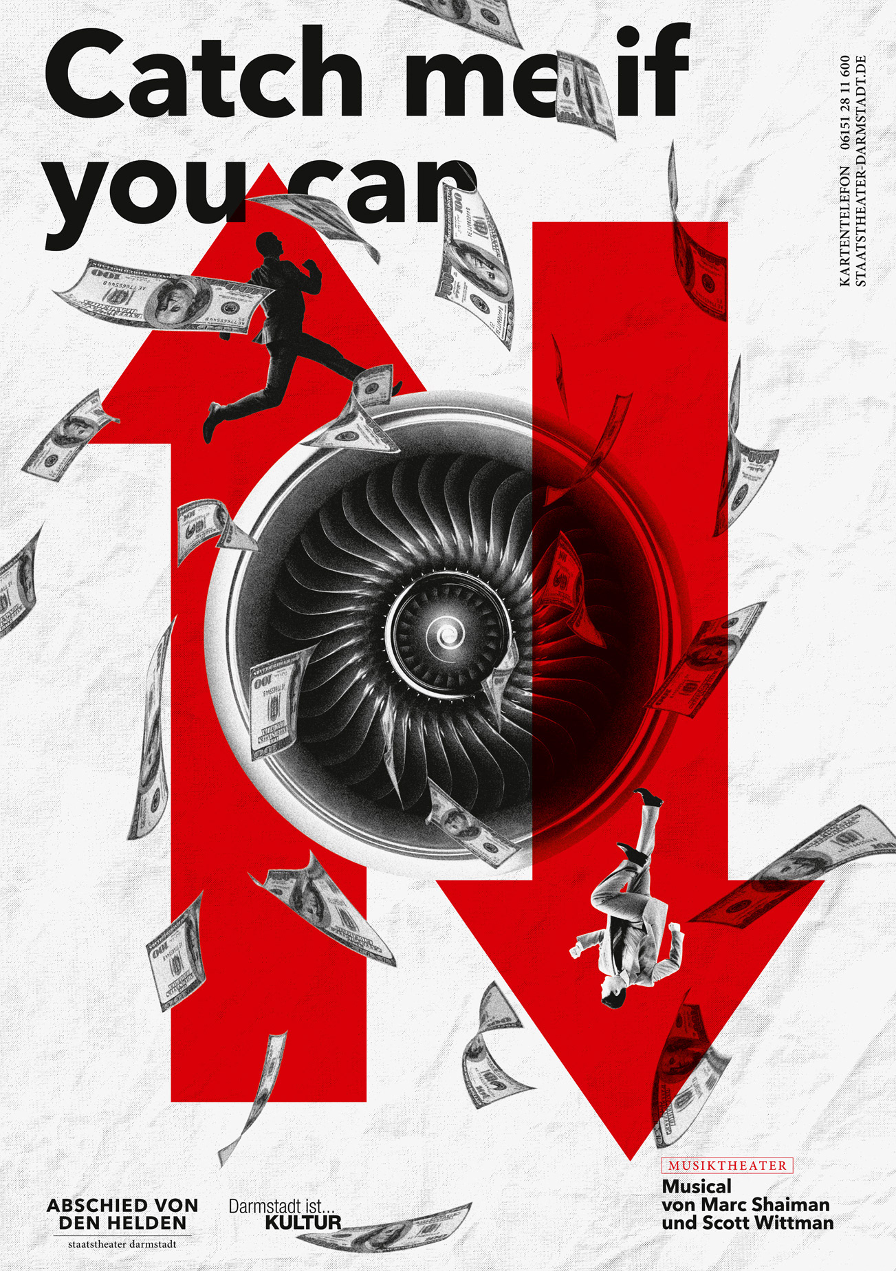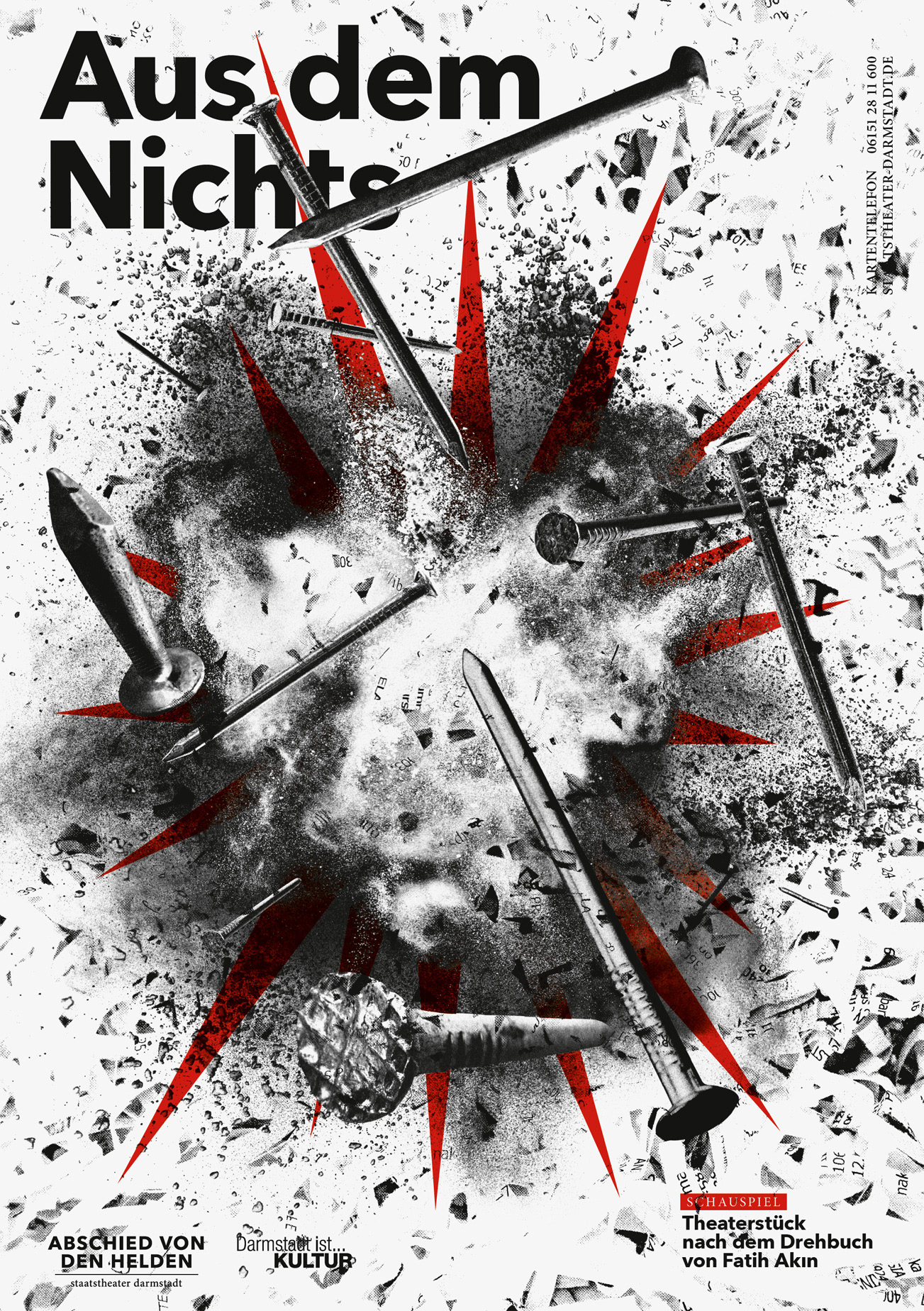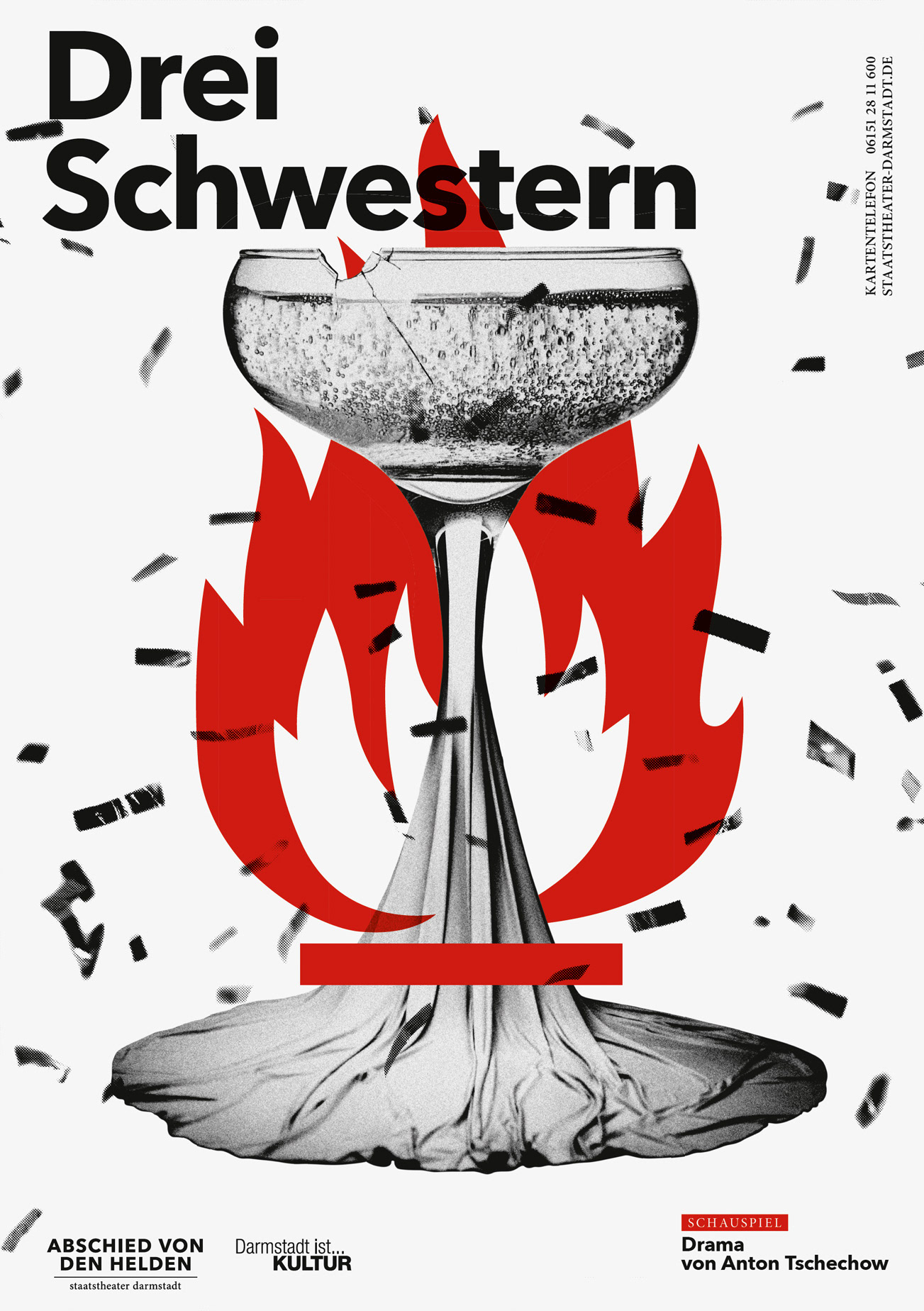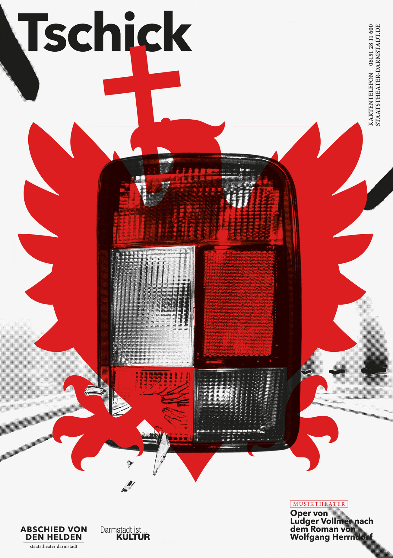 Poster Series for Staatstheater Darmstadt, subject: A farewell to heroes. This is the most extensive poster series created by the studio so far.