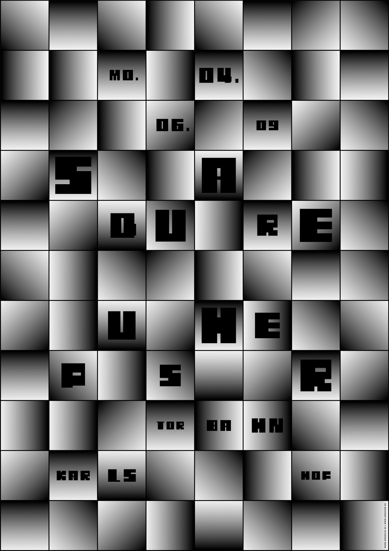Do you know Squarepusher? Poster for a gig in Heidelberg. Silver silkscreen print on black paper.