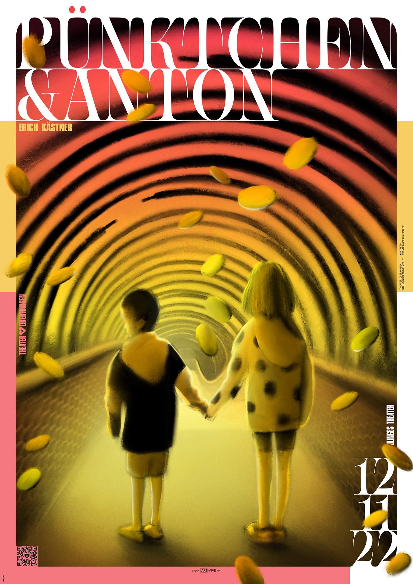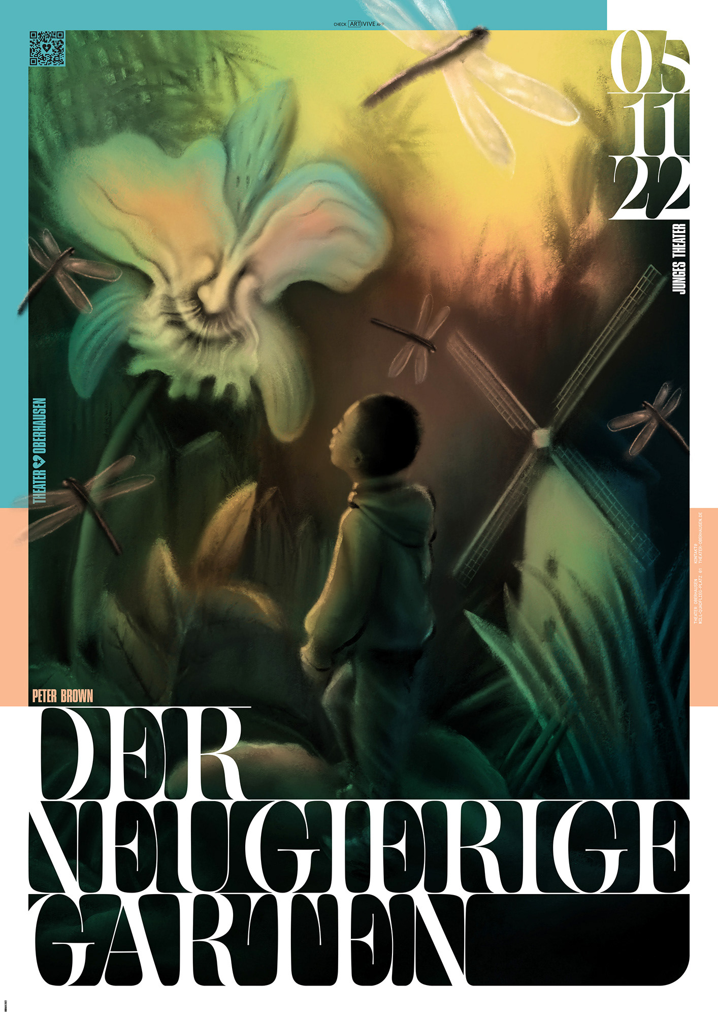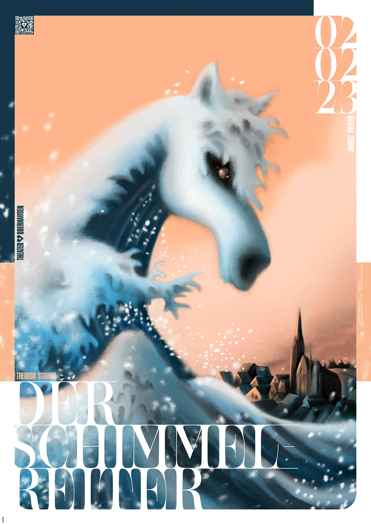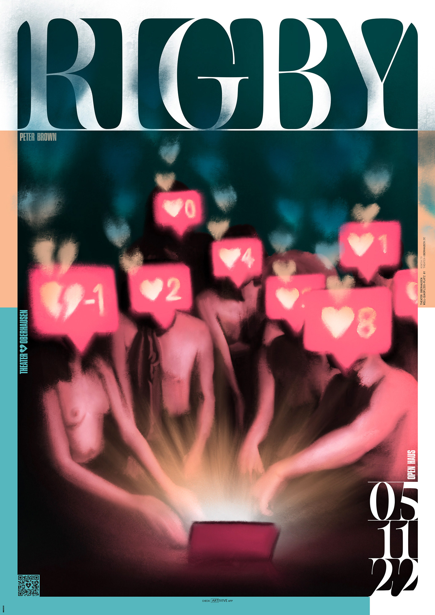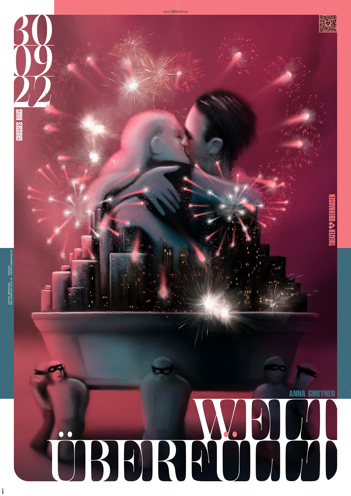 Poster series for Theater Oberhausens' 2022/23 season. The 16 motifs are rich in color and filled with playful details that invite a deeper examination of the motifs and thus the subject matter of the pieces. Dynamically composed of distinct parts to facilitate flexible design work. At the same time, details break out of the frame to create plasticity and immersion.