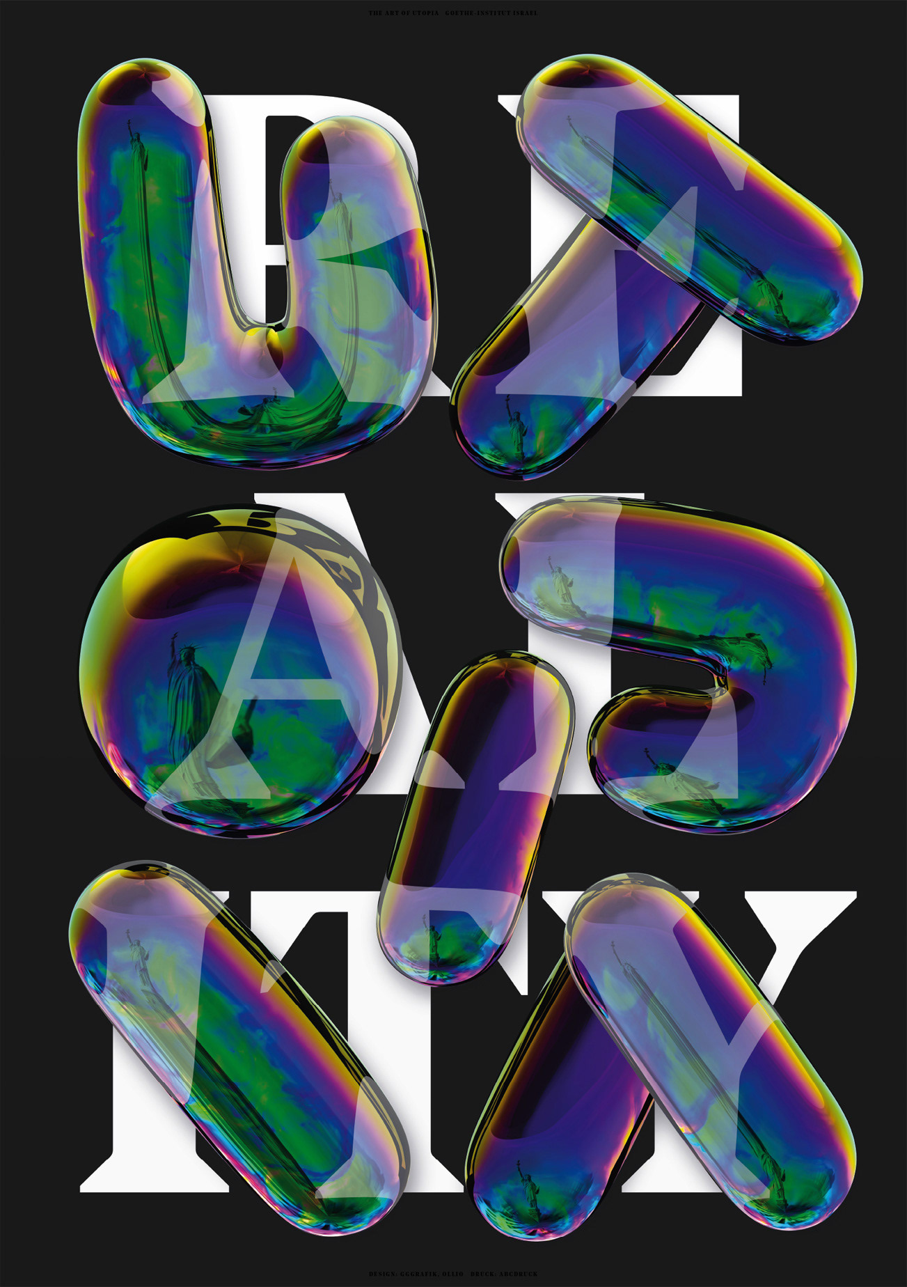 This Poster shows the fragility and preciousness of our desire for a peaceful and prosperous future for mankind. It was created for Goethe-Institut Tel Aviv. Animation by Ollio. Partial glossy silkscreen print enhances the offset print, to achieve a more captivating effect.