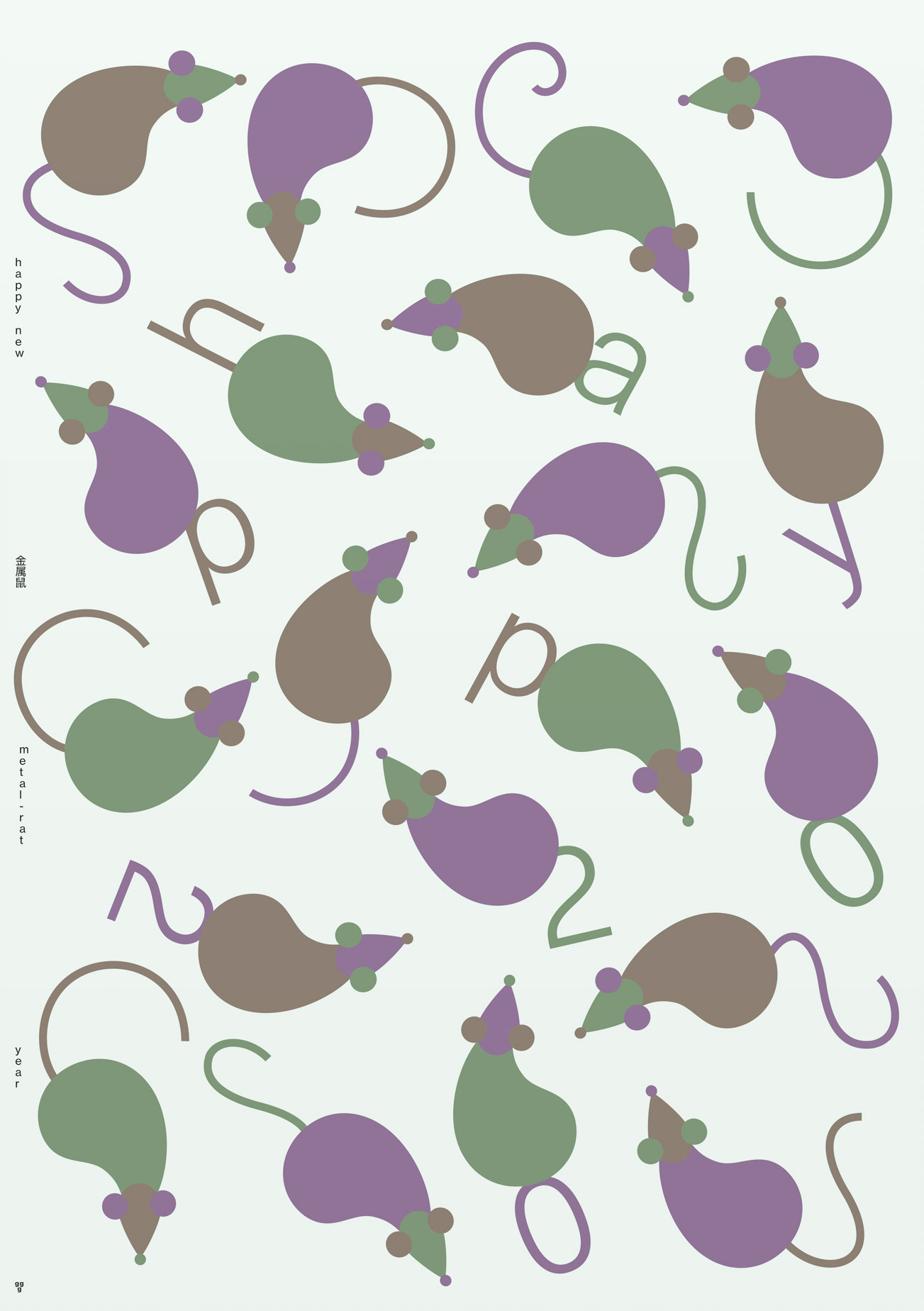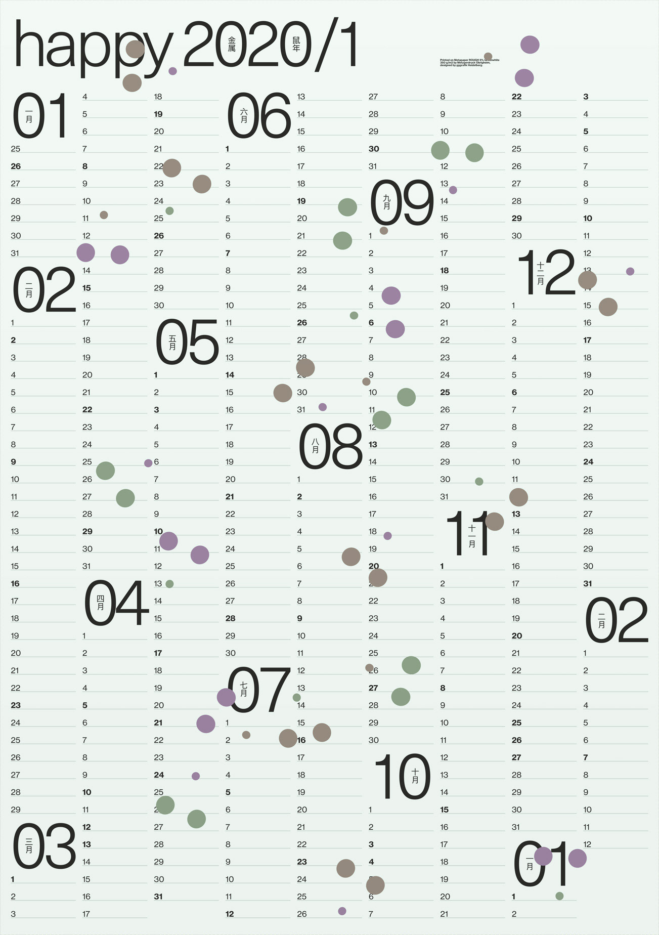 Happy 2020 (Chinese Year of the Metal Rat) wall calendar, 70x100cm, printed with 3 metallic colors + black on 350 gr Metapaper greenwhite.